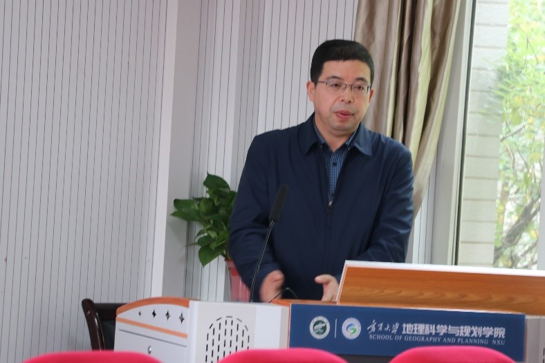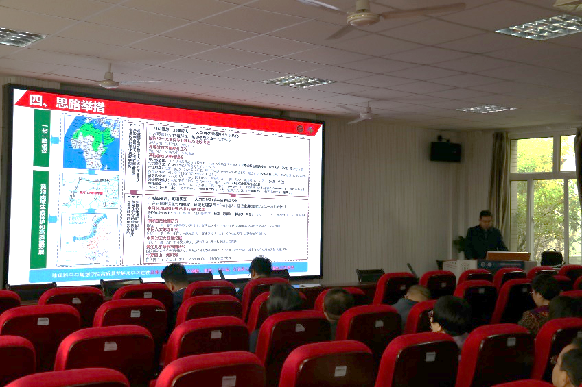 刘小鹏首先传达了学校高质量发展与学科建设研讨会精神。然后,从师资、学科专业和学生、教育教学和科技创新三个方面对学院基本情况进行了介绍。从学院的优势、劣势、存在的机遇与挑战四个方面作了全面分析。提出了“到2024年力争获批地理学博士点,2025年力争建成西部一流学院”的总体目标和“建成一流学科和一流专业”2个具体目标。