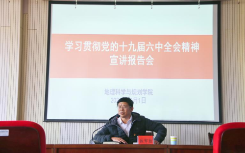 他强调,要把学习宣传贯彻党的十九届六中全会精神作为当前和今后一个时期学院的重要政治任务,深化党史学习教育,统筹抓好当前工作。全体师生要自觉把思想行动统一到全会精神上来,刻苦学习发扬沙枣树精神,以行百里半九十的清醒,不断推进学院党的建设、教学科研、服务社会和学生管理等各项工作上一个新台阶