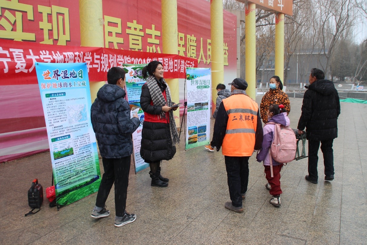 为深入践行习近平生态文明思想,提高广大市民对湿地的认知和保护意识。2月2日,暗网黑料 师生志愿者在银川市中山公园文化广场开展第28届“世界湿地日”科普活动。