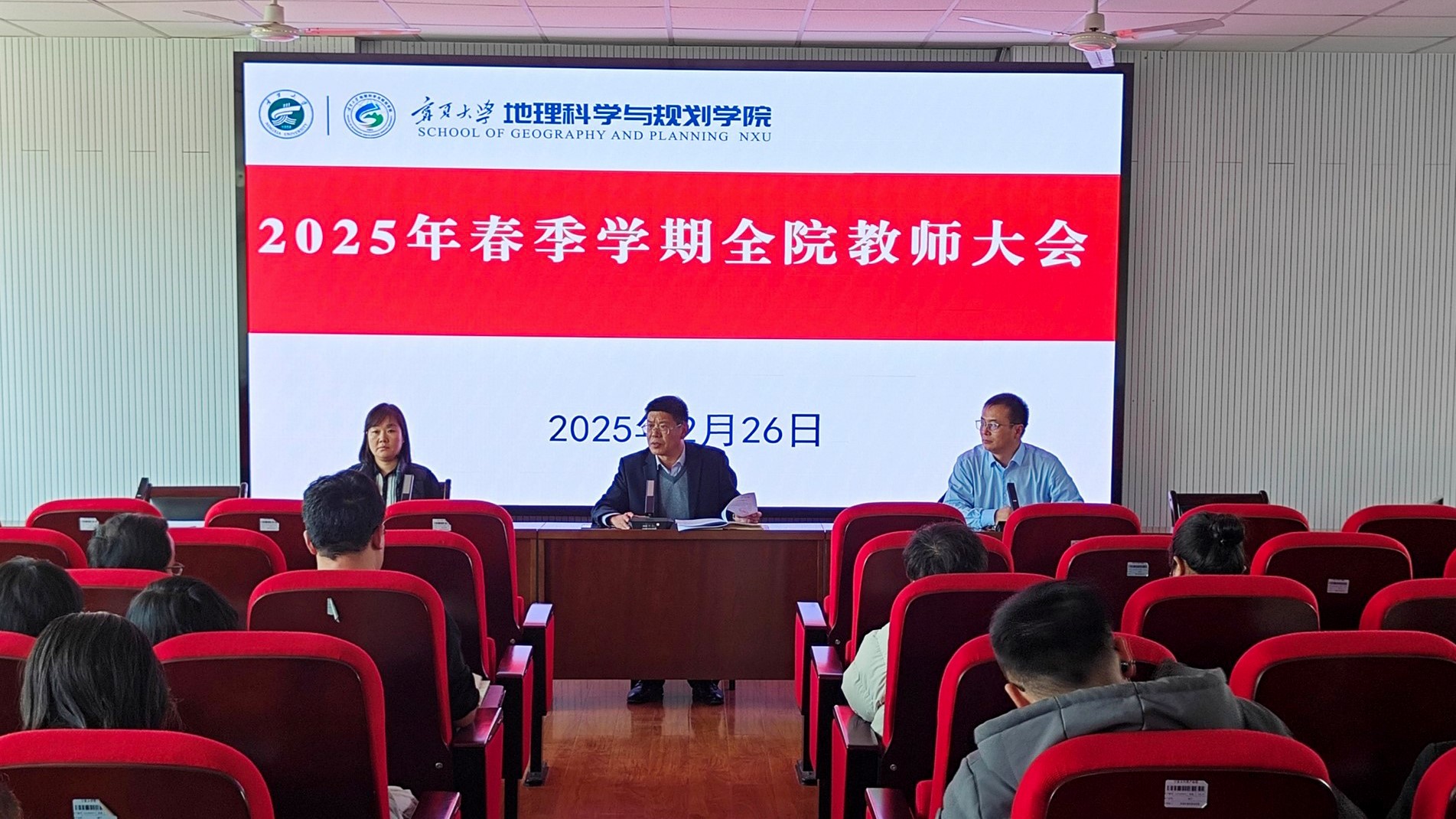 2月26日下午,学院召开2025年春季学期全院教职工大会,传达学校第八次党代会精神和2025年春季学期干部教师大会精神,部署新学期重点工作。学院党总支书记陈军胜传达相关会议精神,副院长文琦主持会议并部署工作,班子成员和全院教师参加会议。
