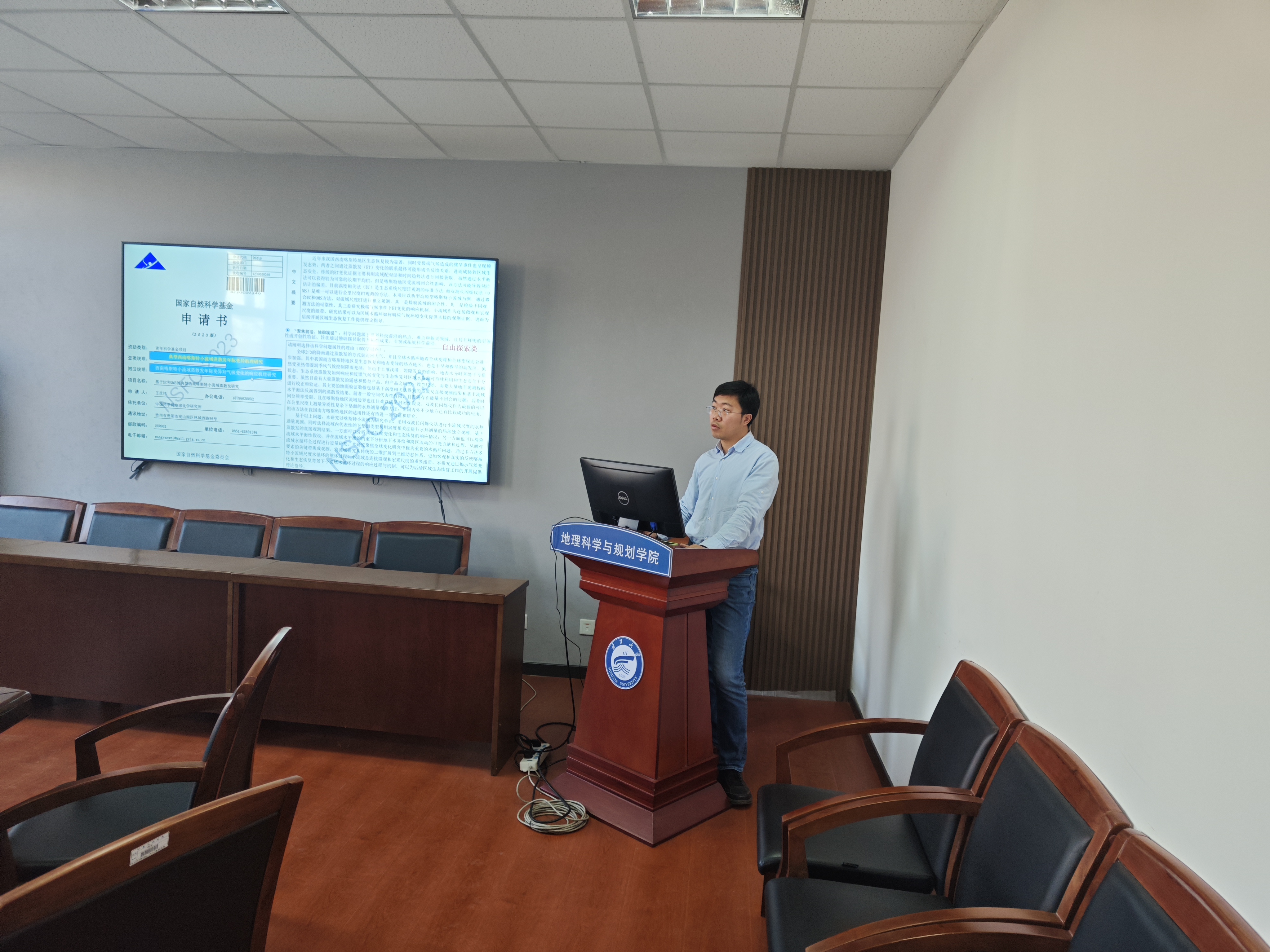最后,刘小鹏院长强调了国家自然科学基金对教师科研成长和发展的重要性,对学院学科建设的发展具有重要意义。希望老师们多与同行专家进行交流,并表示:学院将为基金项目的申报提供全过程指导,学院会邀请专家为教师修改打磨申请书,争取学院在2024年国家自然科学基金申报中取得新的突破。