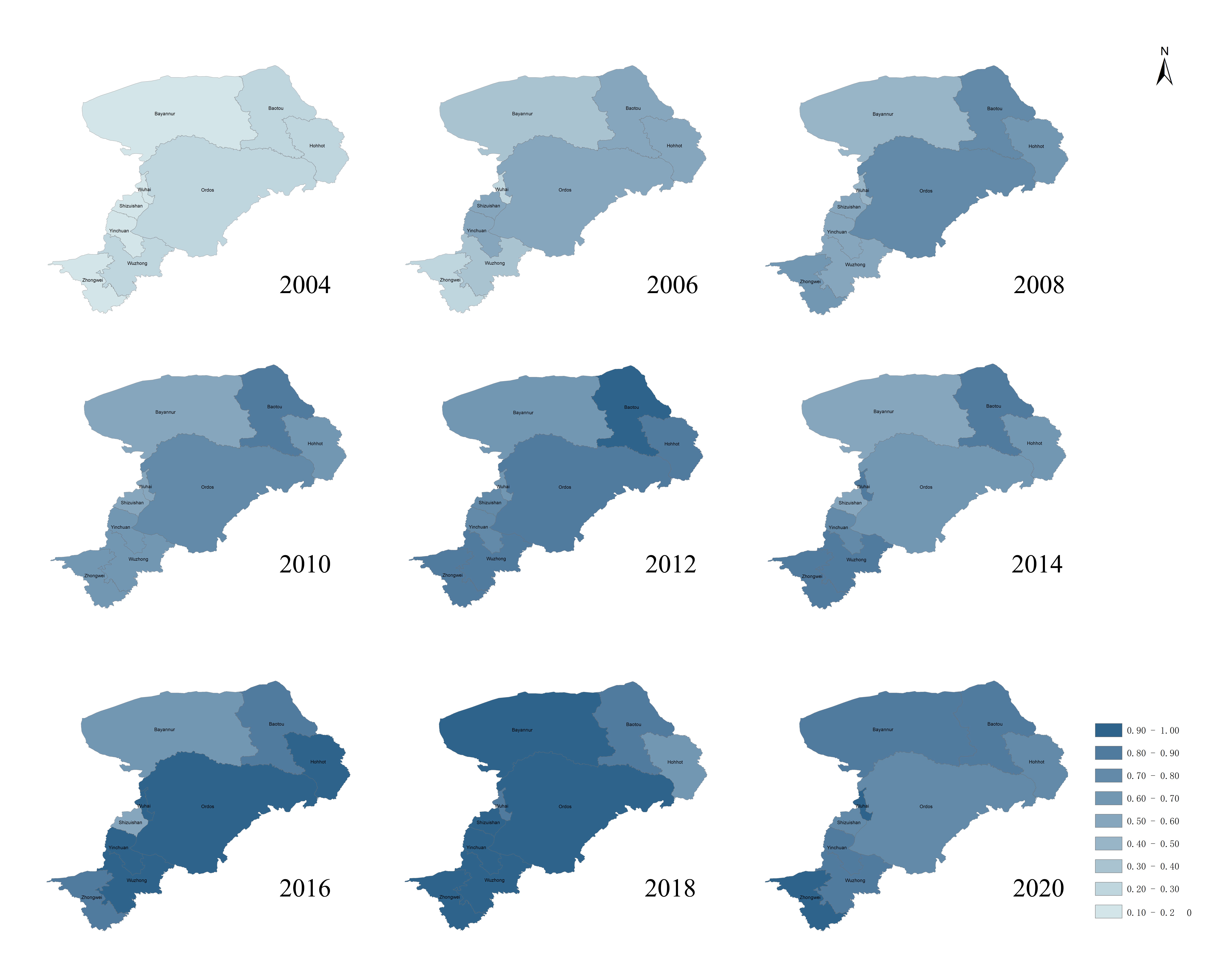 �ƺ����η�ɳ��ˮ��Դ��������Դ��WL��ϵͳ�����Ð����ϵ�о������о�ͨ�����Ð����ģ�ͺ����ģ�ͣ�̽���˻ƺ����η�ɳ��2004����2020��ˮ��Դ��������Դ֮�����Ð����ϵ��ʱ���ݻ��������ⲿӰ�����ء��о����֣����ܸõ�����WLϵͳ�Ȳ���չ�����ֲ�����ˮ��Դ��ȱ��ˮ��Դϵͳ�IJ��ȶ�������Լ��Ð����չ����Ҫ���ء����⣬�����˿��ܶȡ��Ƽ�Ͷ��ȱ�������Ӱ���ˡ�ˮ��������Դϵͳ��Ð���ȡ�
