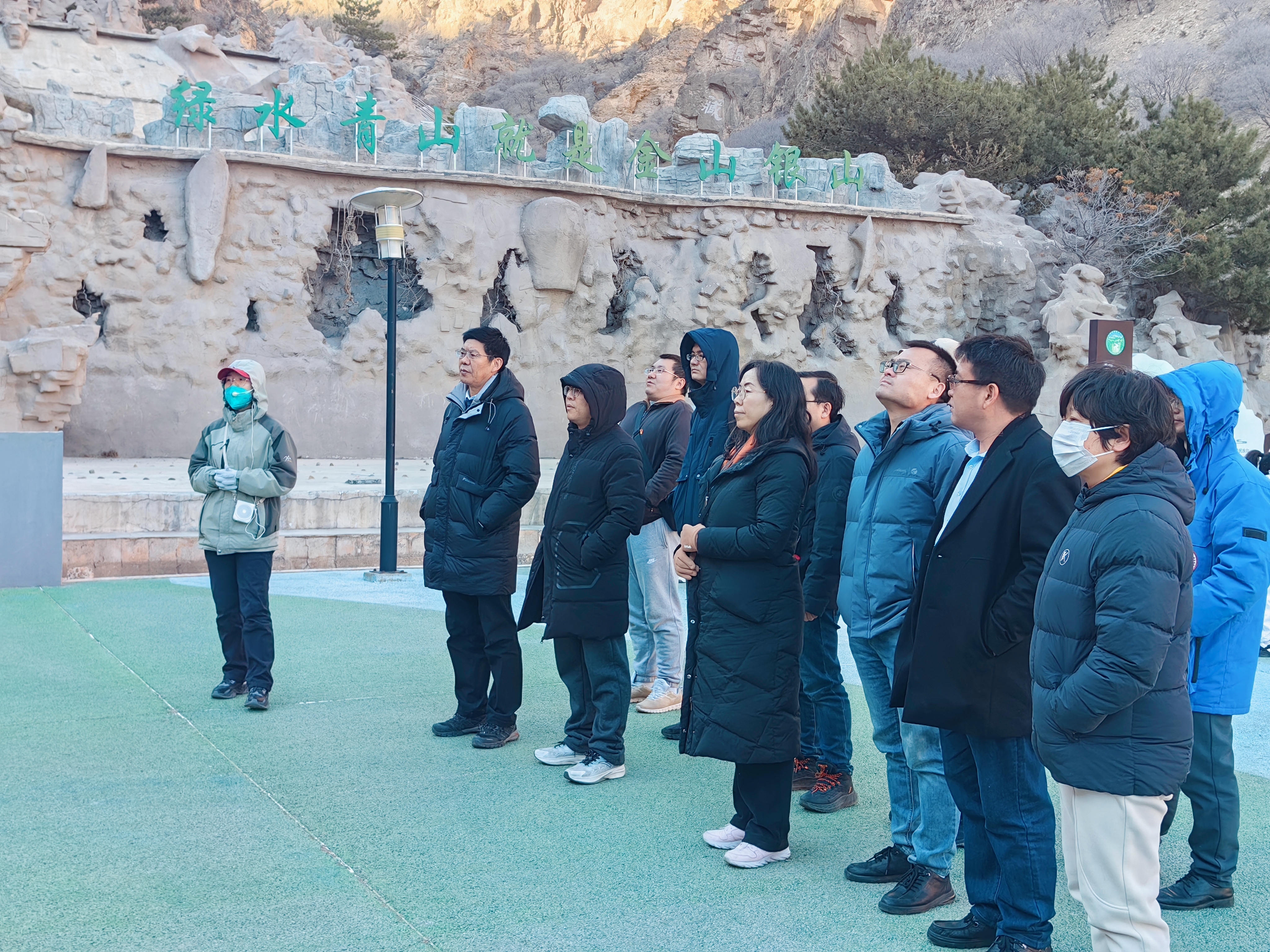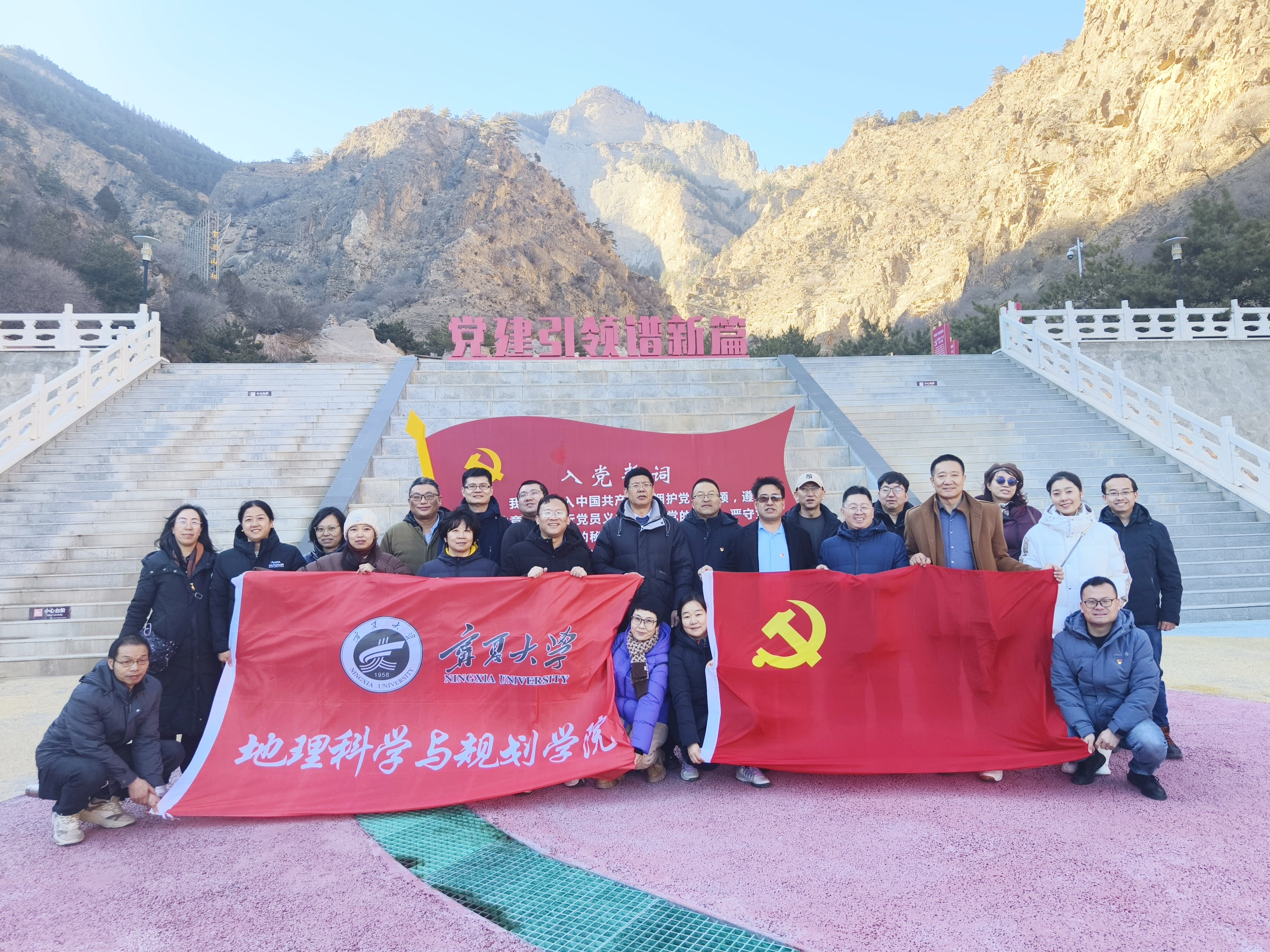 学院全体党员乘车前往宁夏贺兰山国家森林公园绿水青山里的红色吸引—党建广场,认真聆听了讲解员对中国精神、英模英烈事迹、党风廉政建设和党史的讲解。
