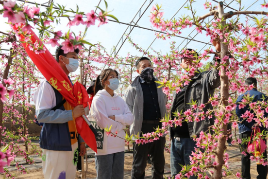 组织全体教师到贺兰县金贵牡丹花乡参观产业融合示范项目、观赏桃花、采摘户外活动。