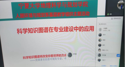 1、佘璐老师主持并开展主题为“应用知识图谱建设地理信息科学专业”的活动。