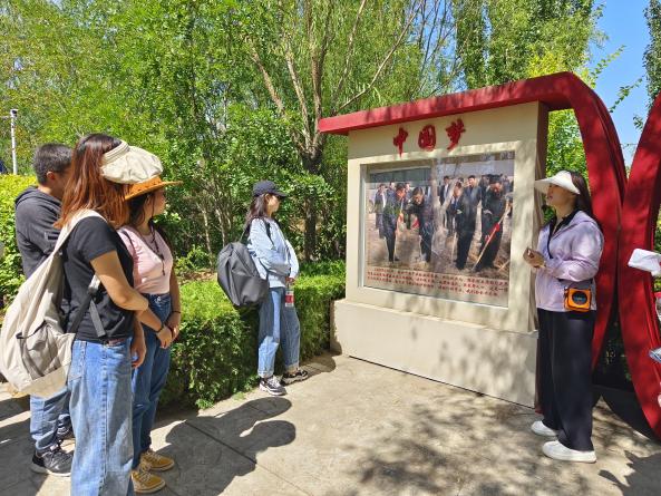 青铜峡市陈袁滩镇唐滩村立足鱼塘资源优势,大力发展乡村旅游经济。通过与当地干部群众交谈,深入农户进行问卷调查,大家了解到该村在产业发展、基础设施、乡村振兴建设等方面的好经验、好做法。接着我们沿着总书记的足迹来到利通区滨河体育场,驻足黄河边,郑芳老师带领同学们共同回顾学习了习近平总书记2020年6月在黄河吴忠滨河大道古城湾砌护段视察黄河生态治理保护状况时的重要讲话精神,再次深刻领悟总书记提出的“绿水青山就是金山银山”的发展理念。