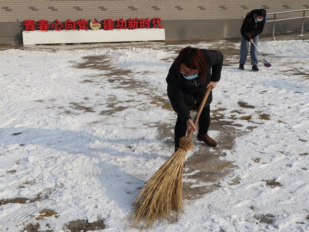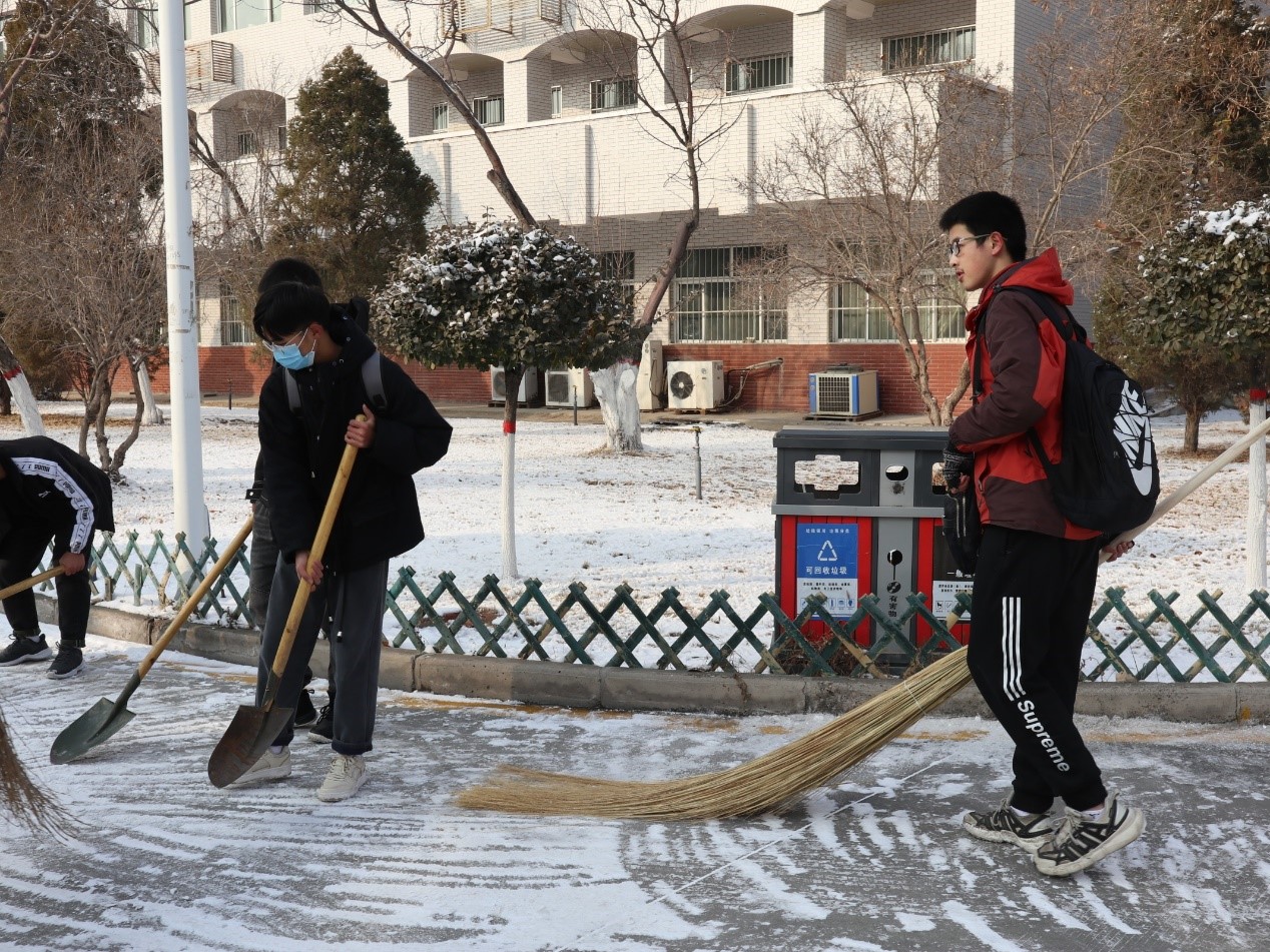 经过两个小时的奋战,此次扫雪任务圆满完成,路面的积雪被悉数清理,留下了干净整洁的路面。虽然室外气温依然很低,但是同学们劳动的热情、团结的力量让这个冬日变得格外灿烂和温暖。