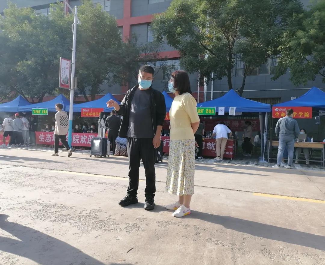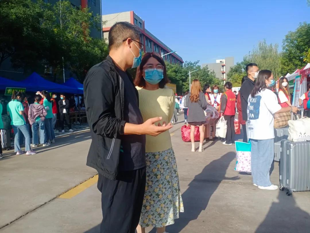 与报到新生亲切交流
