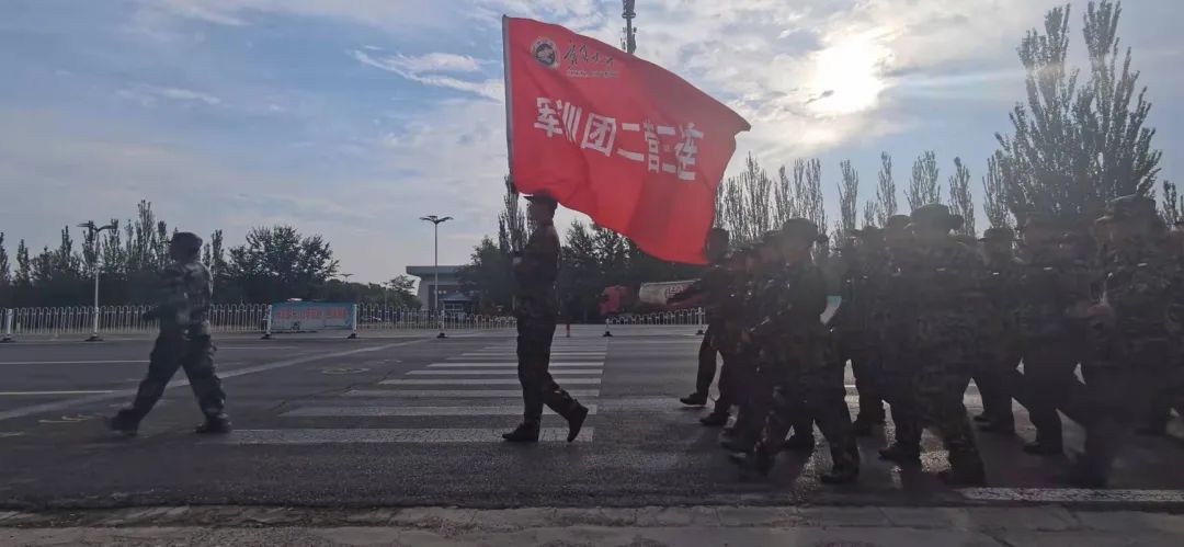 二营三连军训团由书记陈军胜、副书记尤桦和辅导员常瑞敏带领参训全体学员参加。