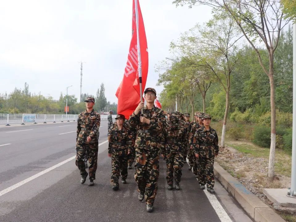营队以战旗开路。拉练途中,整齐有序、齐步共进,先后进行了防空袭演练、口令传递、穿越染毒地带的军事演练。面对重重考验的“小战士们”在各种模拟训练中临危不乱、冷静应对,他们在警报声中奔跑,在烟雾中突围。在军训拉练中,他们充分展现出了地规学子朝气蓬勃、奋发向上的精神面貌。“巍巍贺兰,蜿蜒六盘,二营三连,坚毅如山”,在高昂热情的口号声中,二营三连的队伍始终向前。