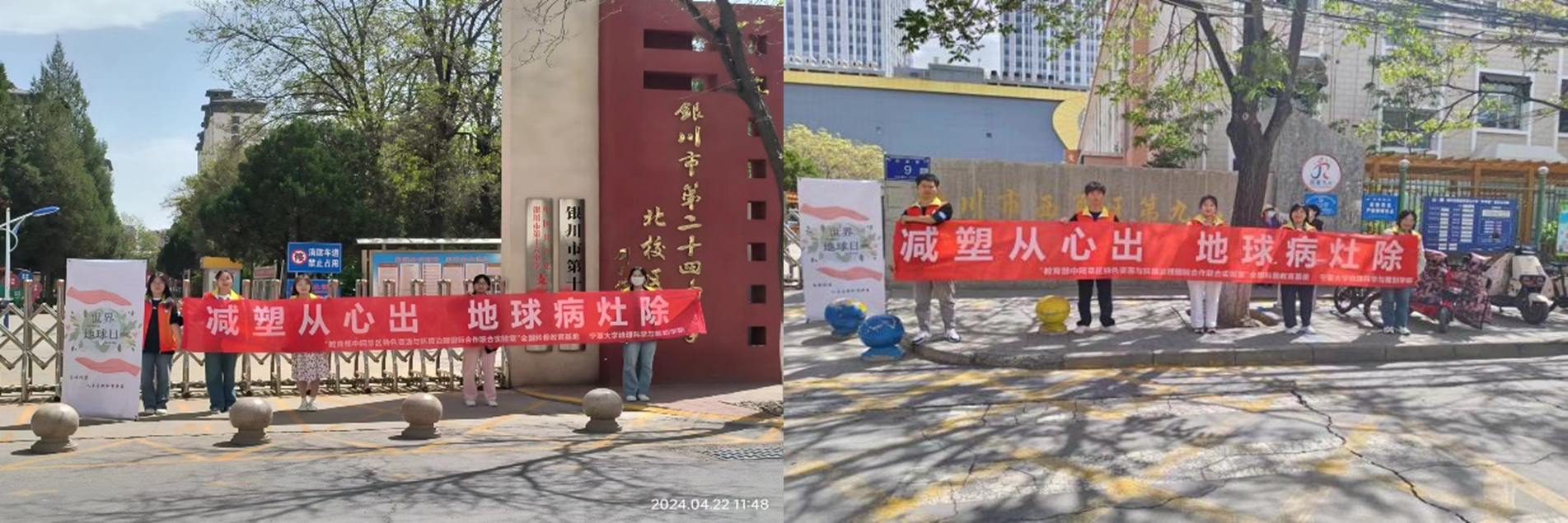2023级地理科学(师范)专业大学生志愿者分别赴银川市西夏区第九小学和银川市第十六中学开展以“减塑从心出,地球病灶除”为主题的世界地球日宣讲活动。
