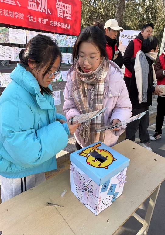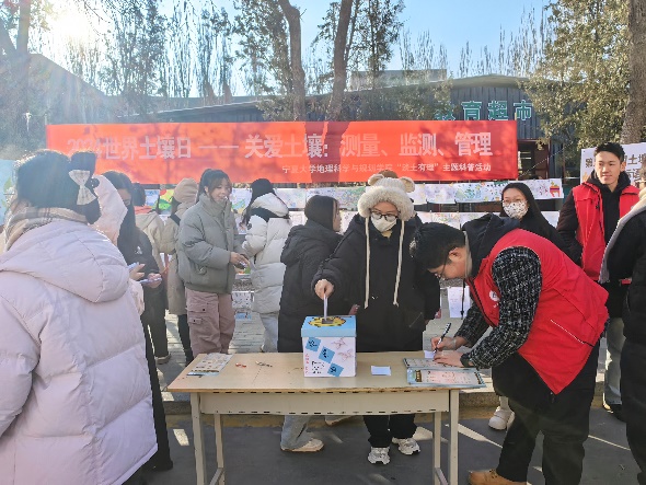 各学院近60名学生、老师前来参加。宣传员们向在校同学介绍土壤日的由来、进行土壤知识讲解,并通过宣读《保护土壤倡议书》、投票评选最佳海报和发放土壤保护宣传手册等方式,让学生们重新认识土壤,让环保知识、生态文明的绿色理念走进校园,营造人人关心土壤、人人参与环保的良好氛围。